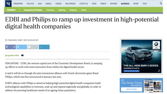 新加坡的经济发展局风险投资部门和皇家飞利浦旨在加速他们的联合投资,并与数字卫生领域的更多创新型公司合作。这一野心符合新加坡加强其作为优化的数字医疗中心的最新重点。