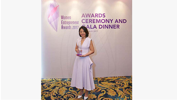 CXA集团创始人兼首席执行官Rosaline Chow Koo获得新加坡教育部部长On Ye Ye Kung的荣誉奖。